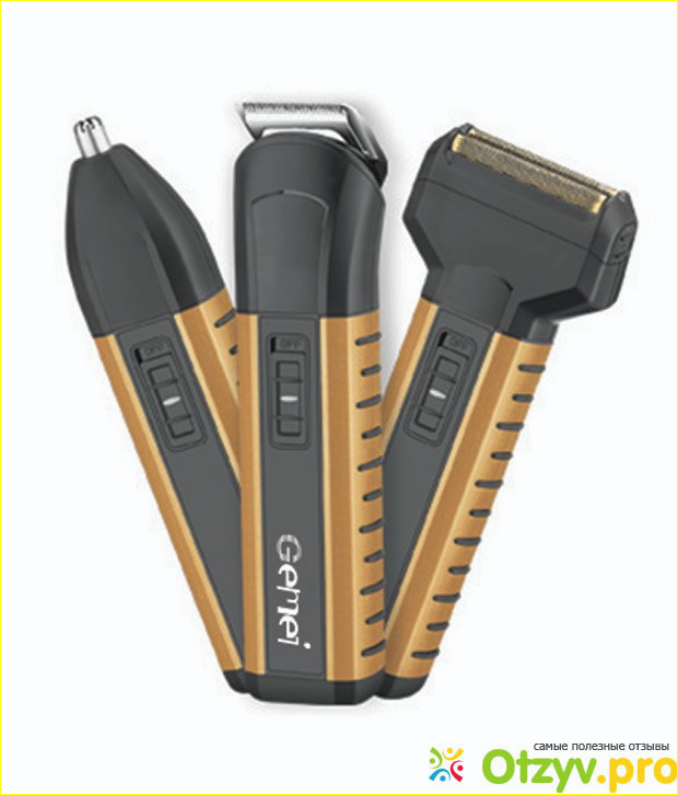 Комплектация Gemei содержит полный набор необходимых насадок и мелочей по уходу за бритвой. Благодаря им можно привести в порядок все тело и особенно лицо.