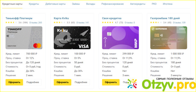 Сегодня поговорим об одном интернете площадке, которая является сервисом подбора различных финансовых услуг банковских учреждений и кредитных компаний. На это сайте вы найдете все что нужно именно для вашего конкретного случая, выгодные предложения по банковским услугам: карты, кредиты, займы и тому подобное. Вы можете провести сравнительный анализ и узнать, где именно вам будет выгодней оформить тот или иной продукт, про различные компании, бесплатно и без комиссионных взносов.