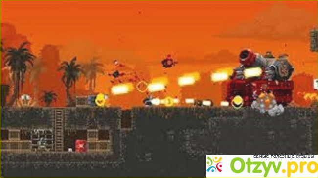 Несмотря на восьмибитный геймплей игра всётаки сделана офигенски, сам сюжет впечатляет и не оставит игрока равнодушным. В процессе игры вы будете не просто бегать и всех убивать проламывая все стены (хотя это и оснавная часть смысла игры Broforce) но так же и по сюжету вас постоянно будет кто-то встречать как например будет поджидать вертолёт чтобы переместить вас на следушую сюжетную линию. Навыки у супергероев на высоте, если вы например разбомбили мост и стену которую не следовало разрушать для того чтобы перебраться дальше, то персонаж может хвататься уже за разрушенные стены и как скалолаз подниматься на ту площадку на которую необходимо для дальнейшего прохождения игры. В целом игра о супергероях, есть по мимо Командоса, например персонаж из знаменитого сериала комадна А, тот самый Латиноамериканец с огромной золотой цепью на шее, бегает с огнемётом и сжигает заживо своих врагов, хотя мне лично больше понравилась пушка у коммандоса выпускающая здоровенную ракету взрывающую врагов и стены в клочья. Ну стоит упомянуть и мегопопулярного Чака Нориса у которого пушка стреляет не то чтобы прямо как у других персонажей а имеет выстрем сразу по трём направлениям, от чего пожалуй не выживет ниодин злодей встретившийся на пути. Игра очень активная с быстрым сюжетом и играть на ней будет гораздо интереснее на джостике чем на клавиатуре, так как в игре ещё и скорость прохождения уровней имеется и в этом конечно джойстик стал бы незаменимой штукой и удобной для такой 2д игры, джостики вообще для 2д игр идеальны я считаю.