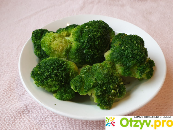 Высыпав содержимое пакета на тарелку, я была приятно удивлена. На тарелке оказались аккуратные соцветия, примерно одного размера с ярким цветом. Даже через тонкий слой инея, который слегка покрывал соцветия, просматривался насыщенный зеленый цвет. Обрезаны они были достаточно аккуратно с небольшой частью стебля. Рассмотрев брокколи повнимательнее, каких-либо дефектов я не увидела. В этот день на ужин меня порадовали отварные соцветия, которые даже без добавления соли были очень вкусными, хоть им и пришлось пройти предварительную заморозку. Продукцией “4 сезона” я осталась полностью довольна и с недавнего времени для качественного питания приобретаю только замороженные овощи их торговой марки.