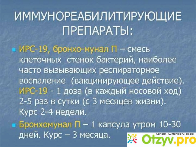 Применяют с целью иммунотерапии, предотвращения рецидивов заболеваний дыхательных путей и тяжелых инфекционных обострений хронического бронхита. Сопутствующее лекарственное средство при лечении острых респираторных инфекций. Назначают его детям возрастом от шести месяцев, что явно подкупает, так как небезопасный лекарственный препарат производитель не будет назначать с такого раннего возраста.