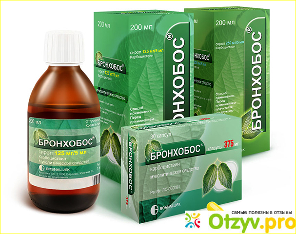 Бронхобос является муколитическим средством на основе главного действующего компонента мукоцистеина. Выпускается в виде капсул и в виде сиропа. Сироп представляет немного вязкую прозрачную жидкость, которая имеет запах малины и окрашена в розовый или красный цвет.