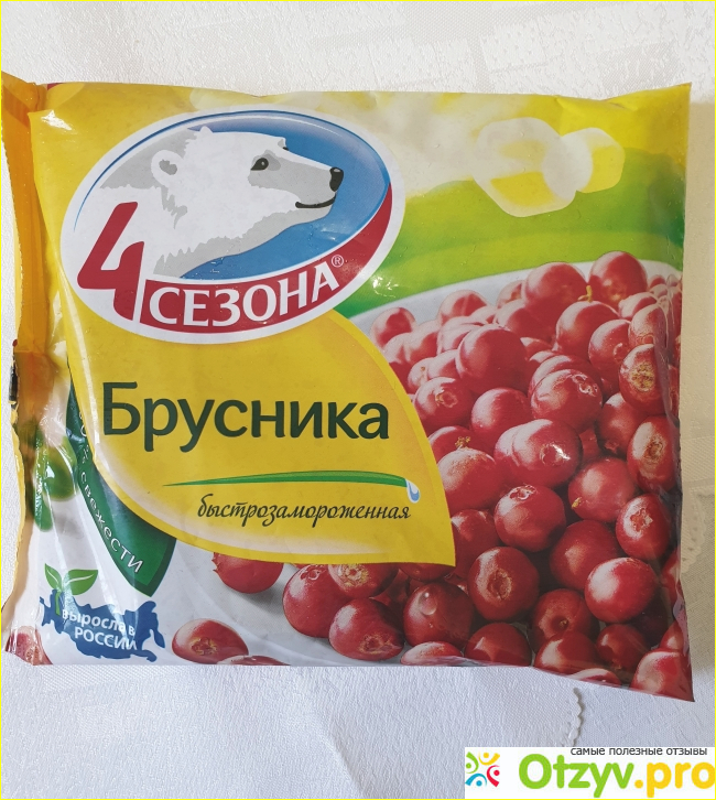 Брусника "4 сезона". Спелая, крупная, отборная. Блестящие ягодки выглядят изумительно. На вкус ещё лучше. Присутствует лёгкая кислинка и та терпкость, которая отличает бруснику от всех остальных ягод. Это послевкусие ни с чем не спутаешь.
