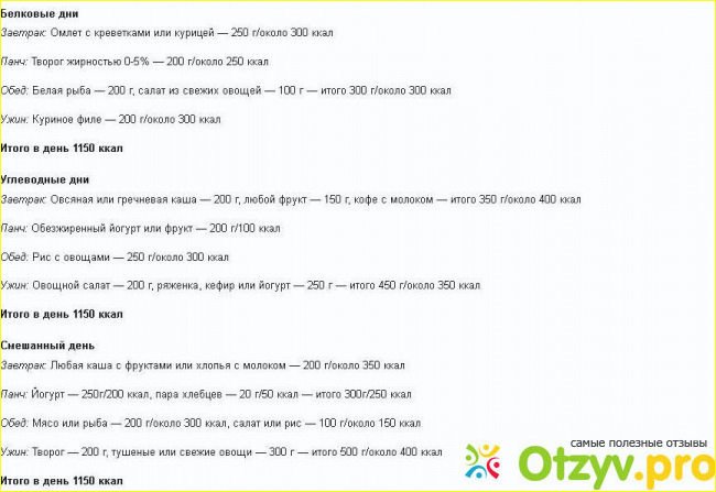 Как вы видите из моего примера на данной диете вам не придется голодать. Все вполне сбалансировано и сытно. Меню вы можете разрабатывать самостоятельно, главное помнить основные принципы.