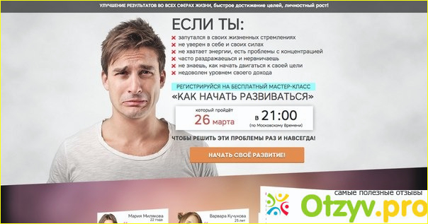 Неприятности могут нас ожидать в любой момент и нужно быть всегда готовым дать отпор им. И вот многие сразу начинает уходить в депрессию, и вот потом начинается очень тяжелый период и им нужна психологическая поддержка. И вот в сфере таких людей очень хорошо зарабатывают как частные психологи, так и компашки подобной этой, которые предлагают различные семинары и курсы, в нашем случае предоставляют 6 дней бесплатно курсов, а далее вам нужно будет выбрать один из трех пакетов, которые стоят бешенных денег, но об этом чуть позже.