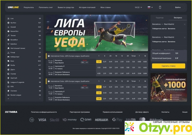 1. С букмекерами я очень осторожен, и при их выборе в первую очередь читаю отзывы и советы. Многие мне советовали попробовать делать ставки на спорт на бк UniLine.