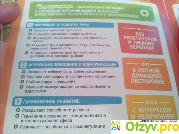После обучения с помощью развивающей программы буквограмма ребёнок встает более коммуникабельным, становится уверенным в себе, намного легче становится ребенку общаться с своими сверстниками, намного легче даются знания и освоение новых знаний. Большой плюс и в том, что в результате такого обучения ребёнок лучше воспринимает изучение иностранных языков. Ну и становятся более усидчивыми.