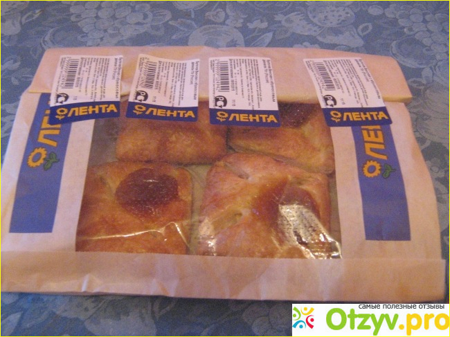 Действительно булочки стали мягкими, воздушными и очень вкусными. Остальные 2 булочки мы съели вечером, но уже разогревать не стали, а съели в холодном виде. Хочу сказать, что булочки в холодном виде мне понравились больше. Корочка у булочки была хрустящая, воздушная. Действительно булочки были вкусные, мягкие, свежие. Можно, конечно, и самому напечь таких булочек, но я не стала заморачиваться и мы решили купить и попробовать магазинные и не были разочарованы. Булочки пекутся в нашем городе Балаково Саратовской области по рецепту ООО "Лента". В каждой булочке по 70 грамм. Изготавливаются булочки из муки пшеничной высшего сорта, маргарина растительного, воды, джема абрикосового, сухого ванильного крема, сахара-песка, дрожжей прессованных, улучшителя хлебопекарного и соли. Как видим состав нормальный, без каких-либо вредных добавок Е. Так, что, если захотелось вкусной булочки, а испечь самому нет возможности, то можно воспользоваться услугами данного гипермаркета и отлично попить чай с такими вкусными булочками. Срок годности булочек 24 часа.
