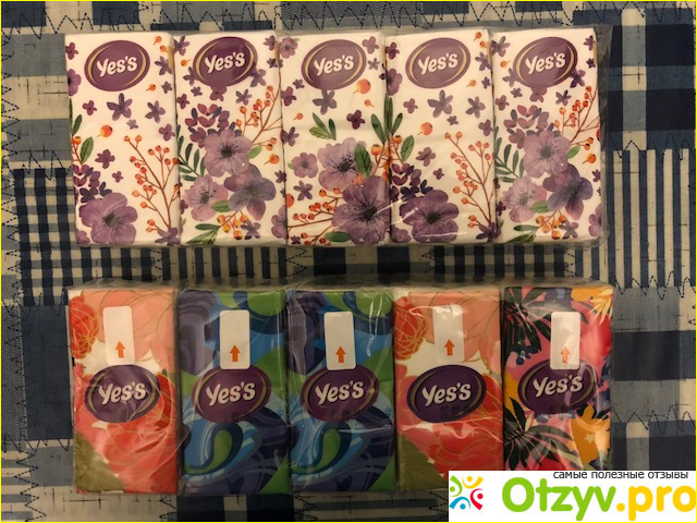 В результате нашла вполне приемлемый для себя вариант – бумажные носовые платочки «Yes`s». Продается этот товар в сетевых магазинах «Дикси» и отличается недорогой стоимостью. Блок из десяти упаковок платочков можно приобрести за 60 рублей.