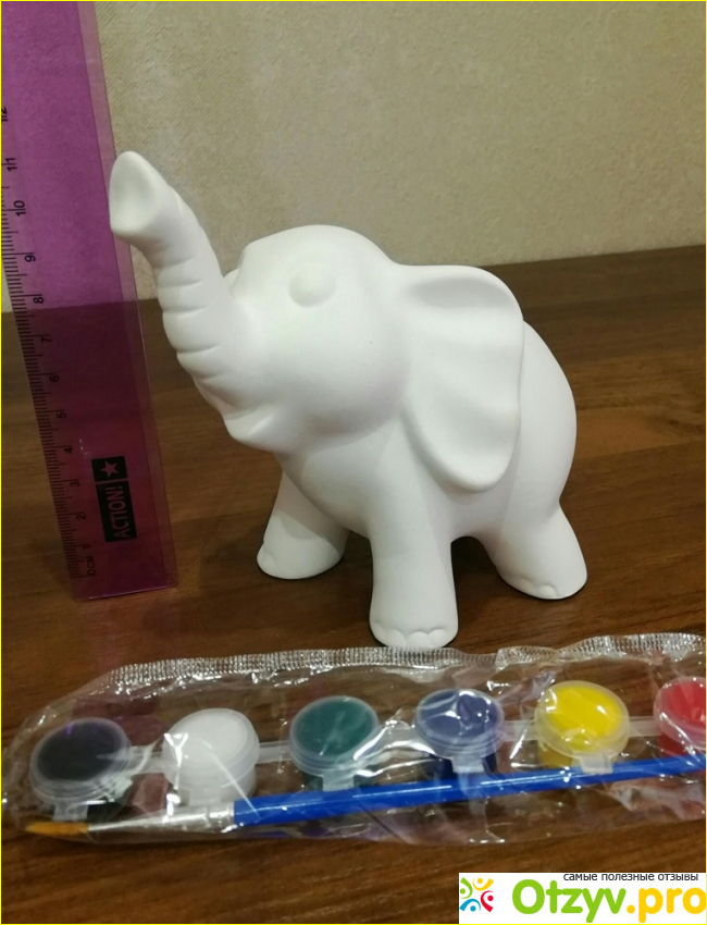 Я получала мою покупку от известного маркетплейса. И видела в отзывах, что многим приходили битые фигурки. Поэтому я рекомендую всем внимательно изучать содержимое коробочки при покупке. У меня все пришло в полном порядке, чему я была несомненно рада. Игрушка слоник довольно большая, без мелких элементов, подойдет и для самых маленьких. Краски в комплекте хорошей консистенции, не вызывают трудностей у ребенка, и хорошо смываются, если есть желание раскрасить игрушку заново. Но, хватит этого набора красок всего на три раза.