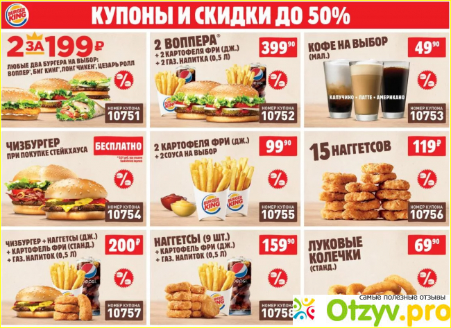 Если у вас нет на телефоне приложения Бургер кинг, то вы сможете ознакомиться со всеми купонами, когда сделаете заказ. На подносе будет лежать листок, где все расписано. При заказе вы можете устно сказать номер понравившегося купона сотруднику или же ввести его в терминал, когда будете оформлять заказ и оплачивать его картой. Все просто и быстро. Мне такая система купонов очень нравится.