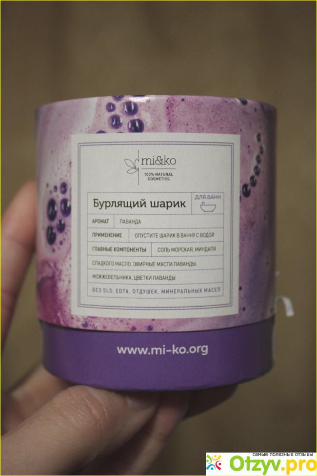 Натуральный состав и на самом шарике видна лаванда, что сразу огромный плюс производителям.