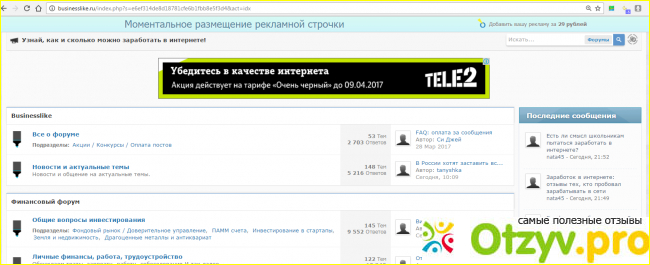 Также стоит соблюдать правило, а если нет то будут применимы штрафные балы. Не следует писать не по теме или как называют "флуд". Поэтому перед тем, как написать сообщение нужно подумать и правильно сформировать свои мысли. Писать можно только о бизнесе и все, что связано с ним, то есть включает сообщение о кредитах, бизнеса, заработка в сети. Чтобы мне оплатили нужно написать не меньше 150 символов. Кстати, этот ставка за сообщение одна из самых высоких. Платит три рубля за одно сообщение. Только есть ограничение в сутки могу добавить только пять сообщений. Если сказать про вывод, то сумма вывода не меньше 300 рублей, но в то же время не больше 400 руб. Если на счету более 400, то вывести могу только 400 рублей, а остальные переносятся на следующий месяц. А так форум мне очень нравиться можно пообщаться и немного заработать. Не каждый форум может похвастаться такой высокой ставкой. Даже админ адекватный, так что советую.