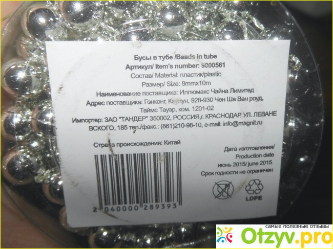 И вот, можно сказать, перед самым Новым годом, почти прямо перед этим праздником, 30 числа декабря, я заходила в магазин "Магнит" за продуктами, то ли за горошком, которого мне не хватило, да еще за чем-то съестным. И увидела на полке несколько туб с бусами. За 1 такую упаковку цена была 40 с чем-то рублей, то ли 41, то ли 42 уже точно и не вспомню, вообщем - сущие копейки:))