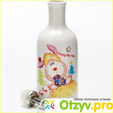 Бутылка для масла выпущена компанией Loraine. Она сделана из материала под названием доломит. Это новый вид керамики. Гораздо легче, ярче и красивее. Но доломит отличается от фаянса и фарфора меньшей прочностью. Изделия из доломита лучше не использовать для горячих блюд. И мне странно видеть в продаже тарелки для супа, чашки для чая, изготовленные из этого материала.