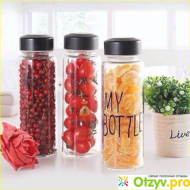 Оксана: «Она идеальна для жаркого лета, благодаря широкому горлышку в ней можно переносить не только воду или другие жидкости, но и ягоды, кусочки фруктов и т. д. Бутылочка так же имеет ещё массу преимуществ, она стильная, модная и удобная».