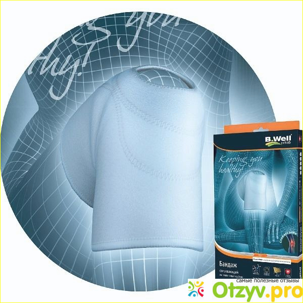 Бандаж B.Well является согревающим и надевается на колено. Предназначен он для того, чтобы лечить боли, которые появляются в коленном суставе.