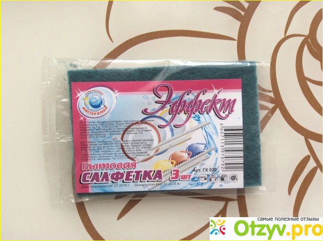Данные салфетки бытового назначения можно приобрести во многих магазинах города, также найти в известных сетевых магазинах. На момент приобретения эти салфетки стоили 24 руб. за упаковку. В упаковке три салфетки со средней абразивностью, которые помогают очистить любую поверхность не нанося ей вреда.