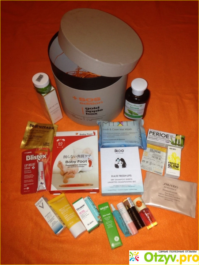 Все, что мы извлекли из нее около 20 косметических средств: Rexaline крем омолаживающий для чувствительной кожи, Estel - маска для лица, Tonic bath aux plantes -тонизирующая пена для ванн и душа, крем-гель CeraVe, BB-тканевая маска Erborian, экспресс — маска с зеленым чаем Holika с экстрактом алоэ, мативирующий крем Post-Workout Clingue, тональное средство из серии CliniqueFit и другие.