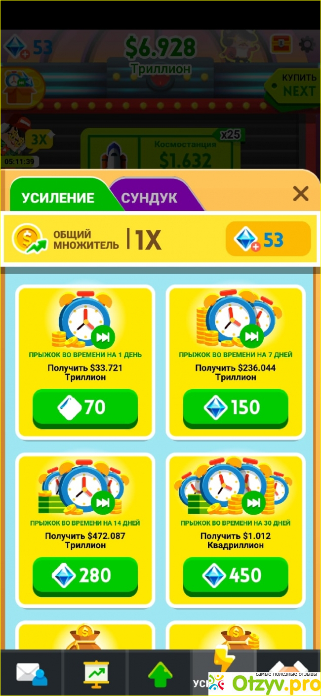 3) Ускоритель – как вы уже поняли это поможет ускорить сбор денег, но бесплатный бывает только сыр в мышеловке, потому ускорители приобретаются непосредственно за бриллианты, которые впрочем куда тяжелее достать чем вы думаете. Сундуки они открываются на определенной эпохе, и там как можно понять есть всякие разные улучшения.