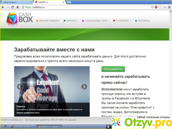 Сайт Cashbox.ru. интересен не только заказчикам, но и исполнителям. Ведь благодаря ему можно не много заработать. Конечно больших денег на сайте не поднять. даже если часами выполнять различные задания. Но небольшие деньги все же заработать удается, причем на это уходит не много времени.