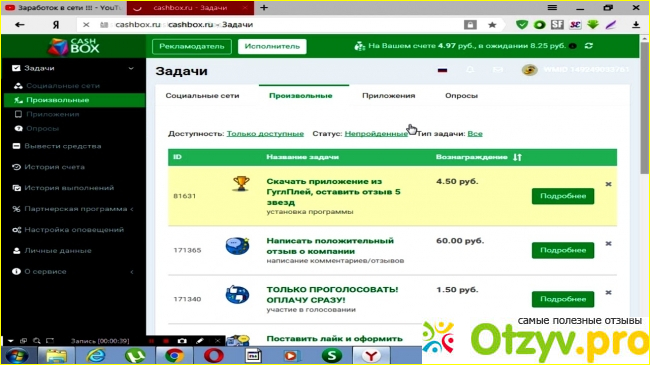 На сайте Cashbox.ru. можно пройти регистрацию, как исполнитель. После этого перед пользователем открывается перечень различных заданий. Их на сайте всегда много и пользователь может сам выбрать, за какую работу ему браться.