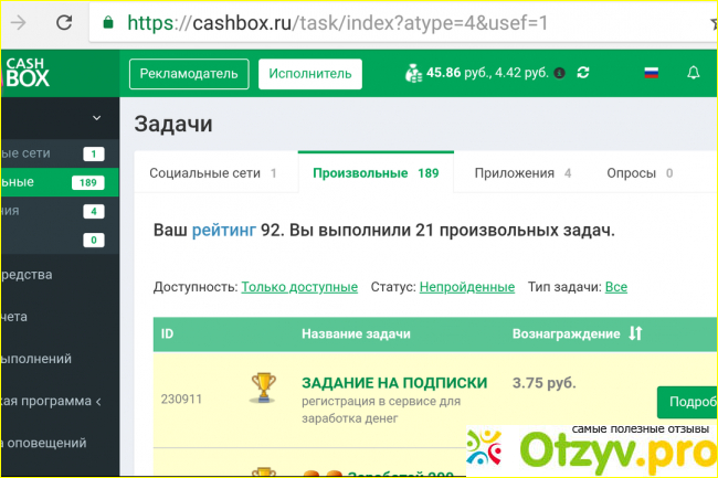 Что бы зарегистрироваться на данном сайте нужно иметь Вебмани кошелек. При выборе задания нужно внимательно читать задания.