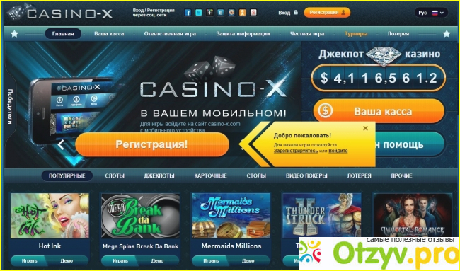 Добрый день, уважаемый посетитель моего отзыва. Сегодня я хочу с вами поделиться собственными впечатлениями об онлайн казино Casino x. Не являюсь азартным человеком, однажды мне позвонил давний приятель и сказал, что есть существенный способ как можно обыграть казино, так все это чистой воды замануха, далее он мне показал свой личный кабинет, на счету лежала довольно солидная сумма денег, но меня интересовали непосредственно выплаты, ну думал, введу в систему 50 долларов проверю, уж больно легко другу достались деньги.