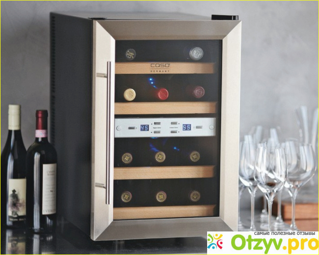 Первое, что бросается в глаза когда включаешь сей агрегат это то, что он вовсе не бесшумный. Я конечно не хочу сказать, что он гудит и трещит как советский холодильник, но за почти 30 т. р. я лично ожидал благородный звук дуновения ветра и не более. А тут все же его работа слышна. Хотя опять же, вы же не на кухне спите, так что какая разница. Потребление электричества судя по документам у него тоже не маленькое, но это надо засекать за месяц, там будет видно. И тем более зависит от того как часто вы там храните вино, поэтому это вопрос относительный. Что касается его прямой обязанности - тут все хорошо, температуру сохраняет как надо, перепадов между отсеками нет. То есть не было замечено, что при понижении температуры в верхнем отсеке понижалась бы температура и в нижнем. Перед покупкой почитал пару отзывов в интернете. Некоторые грешили на то, что CASO Wineduett 12 греется сзади, а где-то в других местах, мол дует холодным. Я задал этот вопрос в магазине, но консультант меня не совсем понял и заверил, что с такими жалобами он не сталкивался. Ну собственно и я тоже ничего такого не заметил. Ничего такого из-за чего стоило бы писать. В заключении все же хочу сказать, что винный холодильник и CASO Wineduett 12 в частности, это скорее "дорогой охладитель вина" и не более. Сеичас все вина содержат диоксид серы и потому их не обязательно хранить при каких-то особенных температурах. А употреблять при специальной температуре следует лишь дорогие вина, на дешевых вы просто не заметите разницы. Так что такой холодильник подойдет лишь для тех кто пьет дорогие вина и часто.