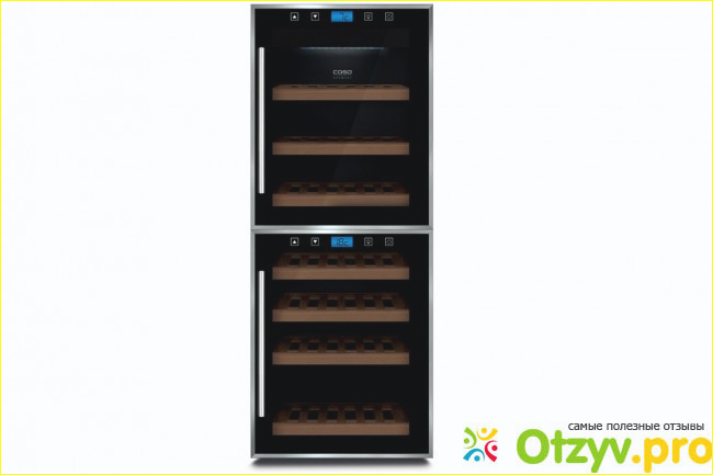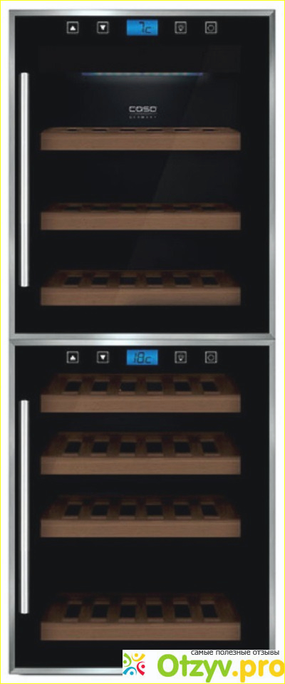 Пожалуй самым уникальным в CASO WineMaster Touch 38-2D является стеклянная дверь и внутренняя подсветка, что создает красивую атмосферу внутри шкафа полного разнообразных вин.