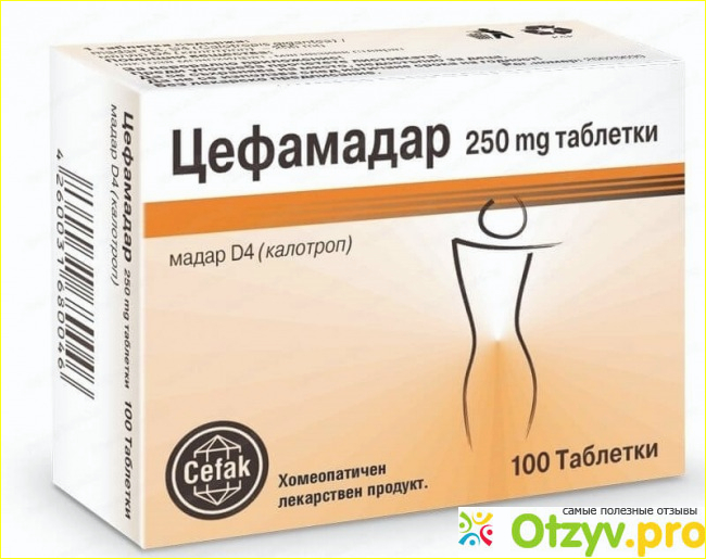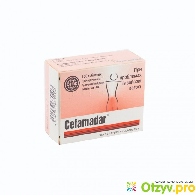 Выпускается он в виде таблеток, является гомеопатическим и имеет в своём составе один активный действующий компонент - экстракт Калотрописа, благодаря которому происходят некоторые действия. За счёт того, что препарат имеет полностью растительный состав, то никаким негативным образом он не влияет на организм. Самое интересное заключается в его воздействии, которое направлено на ЦНС путём подавления рецепторов участка гипоталамуса, отвечающего за чувство голода и жажды, соответственно чувство голода снижается. Преимуществом выступает тот факт, что привыкания Цефамадар не оказывает, также предупреждает повторному набору веса и на показатели крови не влияет. Показан препарат при алиментарном ожирении, причём независимо от того, какой оно степени.