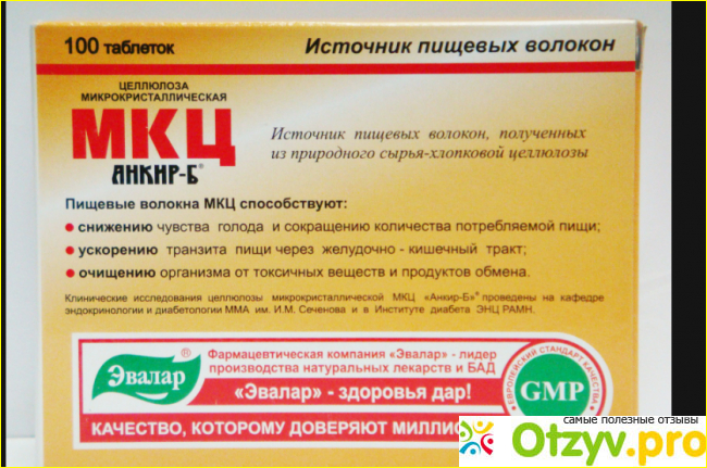 Продукт этот создают из хлопка. При употреблении МКЦ возникает чувство сытости, организм очищается от шлаков и токсинов, а так же средство обладает очищающим, общеукрепляющим и тонизирующим действием. Выпускается средство в виде порошка или таблеток.