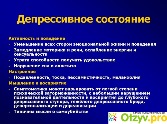 Когда у меня стало развиваться чувство вины перед многими людьми, прежде всего — родителями, детьми, тревожность в связи с условиями работы, напряженность, приводящая к бессоннице и даже — полному отсутствия сна, пришлось обратиться к врачу психотерапевту. Диагноз — депрессивное состояние.