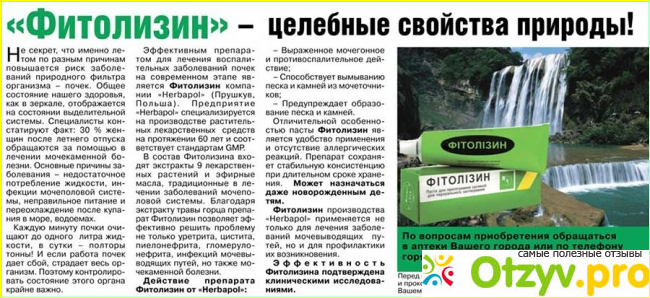 Цистит у меня начался давно и сколько бы я препаратов ни пила — ни одно средство его до конца не вылечило. А вот после приема Фитолизин у меня прекратились боли и до сих пор не возвращались.