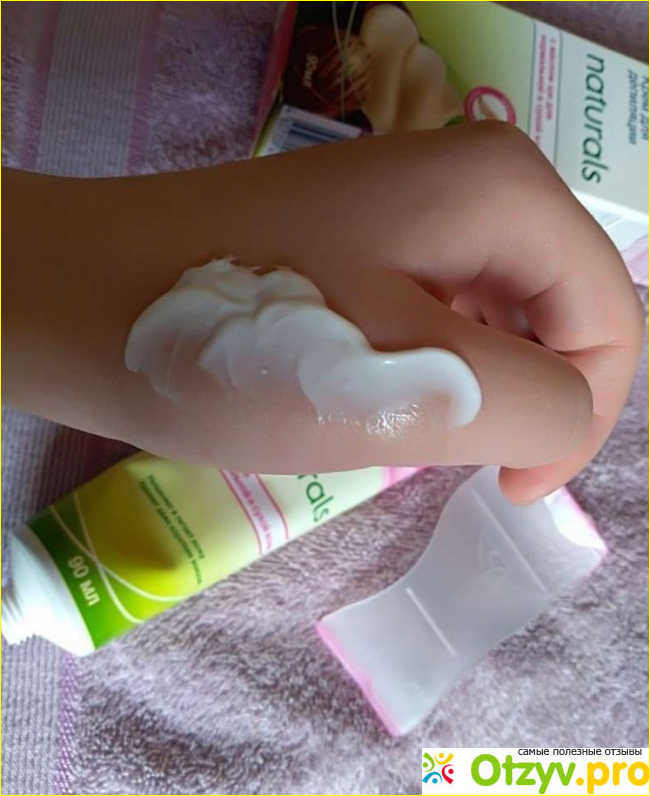 Крем мне нравится: им проще пользоваться, чем, например, полосками. Волоски размягчаются и вполне реально убрать всё шпателем. Но главная проблема, из-за которой я не хочу его применять: волосы очень быстро отрастают. Процедуру надо повторять заново чуть ли не через пару дней. Постепенно я разобралась в этом, рассмотрев под лупой удалённый волосок. Они удаляются не с корнем, удаляется только верхняя часть волоска. Поэтому крем необходимо покупать часто, несколько раз в месяц. Восковым полоскам в этом деле крем сильно проигрывает.