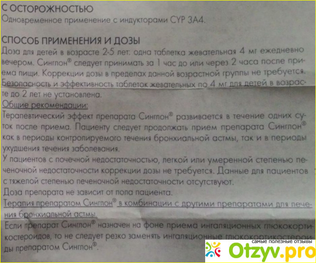 Приём этого препарата не является показателем, который отражает, как протекает бронхиальная астма. Его следует принимать независимо от течения заболевания. Людям в пожилом возрасте также страдающим почечной недостаточностью любой степени тяжести и независимо от пола специально подбирать дозу не надо. Препарат хорошо переносится и имеет очень мало или слабо выраженные побочные эффекты. Чаще всего их проявление не требует прекращения приёма препарата. Данное средство не купирует приступы бронхиальной астмы, а предназначается для длительного лечения. Чаще всего его применяют для комплексного лечения с другими препаратами.