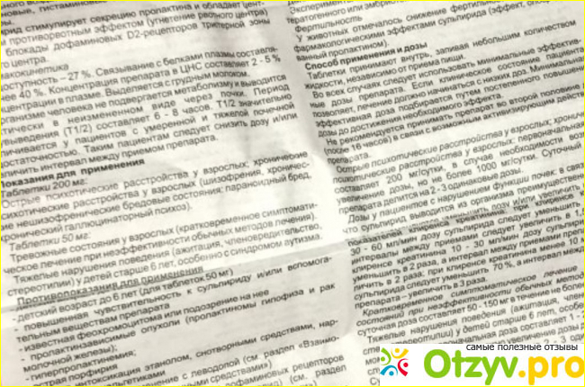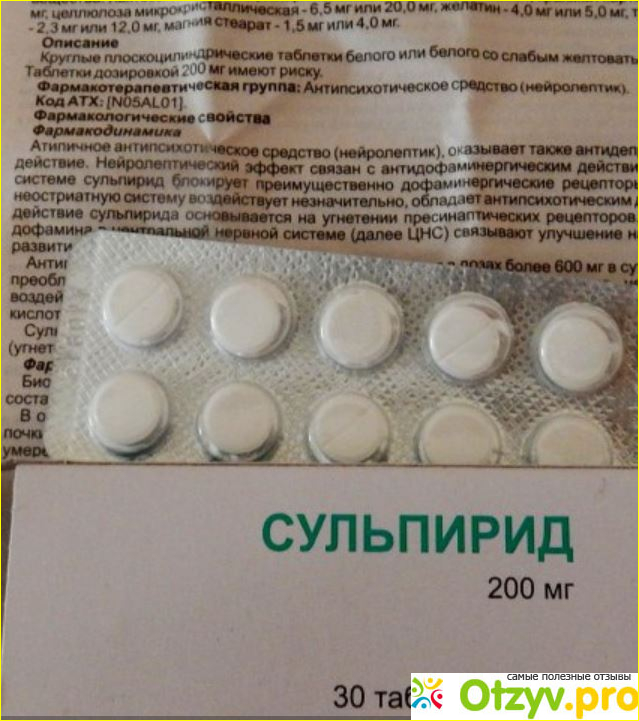 Его даже назначают при синдроме раздраженного кишечника. Данный препарат относится к первичным нейролептикам и своё анти-психическое воздействие может проявить только, если принимать его в больших дозах. Мне дозу выписали среднюю, умеренную, 400 миллиграмм в сутки, хотя большая доза считается где-то от 600 до 800 миллиграмм в сутки. По заявлению доктора препарат не только снижает депрессивное состояние, но и понижает болевые ощущения в животе. Но в начале расскажу о самом препарате из инструкции.