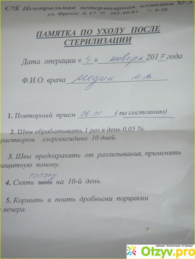 Привезли мы кошку в 9-30 утра, забрали в 18-00. То есть забираете животное не сразу после операции, несколько часов кошка находилась под наблюдением, что очень удобно. Зашили шов нашей кошечке рассасывающимися нитками, поэтому на снятие швов ехать не было необходимости.