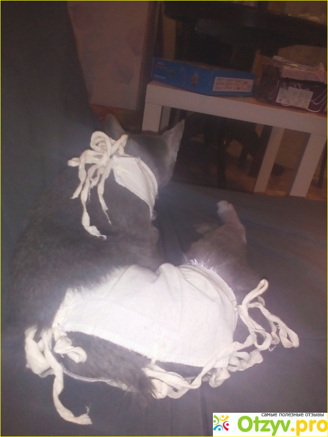 В последующие дни кошке становилось все лучше и лучше: она хорошо стала кушать, регулярно ходить в туалет. Лишь попона не давала ей жить полноценной жизнью. Но снимать ее нельзя, так как она защищает шов от вылизывания. Как только снимаешь попону, кошка приступает к вылизыванию шва, чтобы шов не разошелся, защищаем его попоной. На 6-7 день я периодически на некоторое время давала кошке размяться, снимала попону, потом вновь надевала. На восьмой день я ее сняла. В памятке написано, что попону надо снять на 10й день, но я все время контролировала шов, видела, что он в полном порядке, поэтому сняла неудобную для кошки попону пораньше.