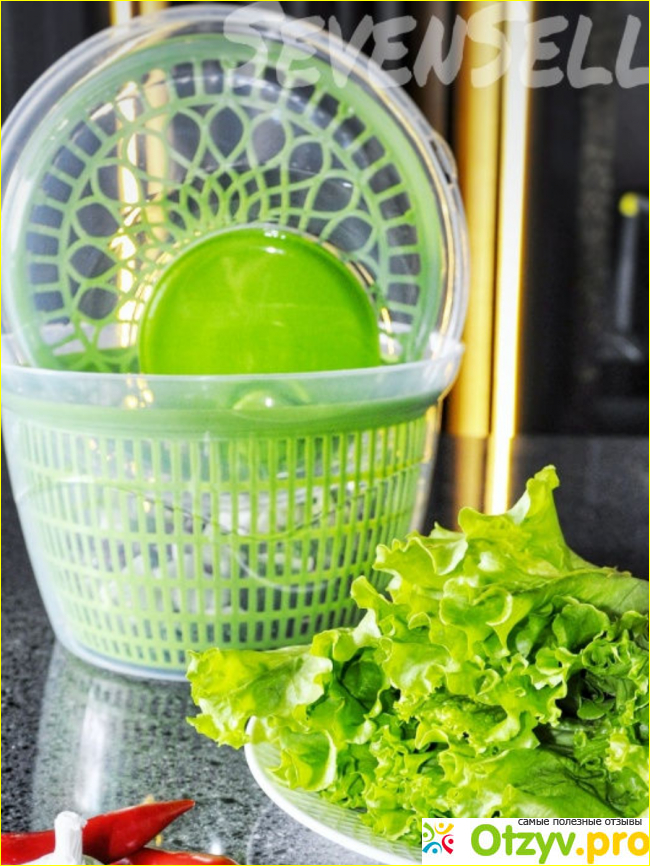 И цена соответственно дешевая. Я опасаюсь запаха пластика, поэтому решила все-таки приобрести подороже в надежде на качество. В результате купила в интернет-магазине wildberries турецкую центрифугу для сушки зелени SevenSeLL.