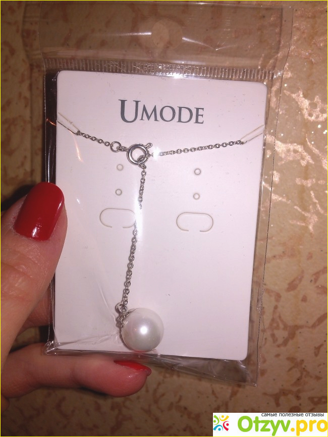 Но покупать серьги с настоящим жемчугом не рискнула, так как во-первых, вдруг не подойдут к образам, а во-вторых, говорят, что жемчуг подходит немногим людям. А вот если жемчуг не подходит владельцу украшения с ним, то жемчужинка начинает своему хозяину всячески вредить по жизни. Я в приметы подобного рода как-то верю, не то, чтобы безоговорочно верю, но прислушиваюсь. Поэтому на сайте товаров из Поднебесной Алиэкспресс заказала себе небольшие серёжки с искусственными жемчужинками. А ведь Вы же знаете нас, женщин. К серёжкам, естественно, понадобилось и колечко, ну а уж к колечку для полного удовлетворения нужно было выбрать и какую-нибудь подвеску с небольшого размера жемчужинкой. Свой выбор я сделала в пользу цепочки с подвеской торговой марки Umode. Причём, магазин в котором я покупала данное украшение. назывался Bravkis. Это название ещё одной торговой марки качественной бижутерии из Поднебесной. А вот моя цепочка оказалась другого бренда. Но мне лично, всё равно. Бренд Umode я уже как-то опробывала. бижутерия достаточно качественная. И, разумеется, при надлежащем уходе, прослужит данная бижутерия довольно долго. Я не допускаю контакта цепочки с водой и вообще, стараюсь избегать контакта бижутерии с любыми жидкостями.