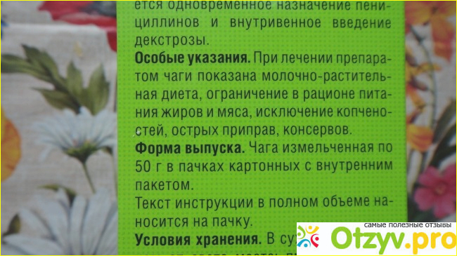 Кстати, на пачке есть рекомендация, — при употреблении чаги показана молочно-растительная диета, что само по себе очень полезно, а в сочетании с лечебным действием препарата может действительно избавить от некоторых очень неприятных проблем.