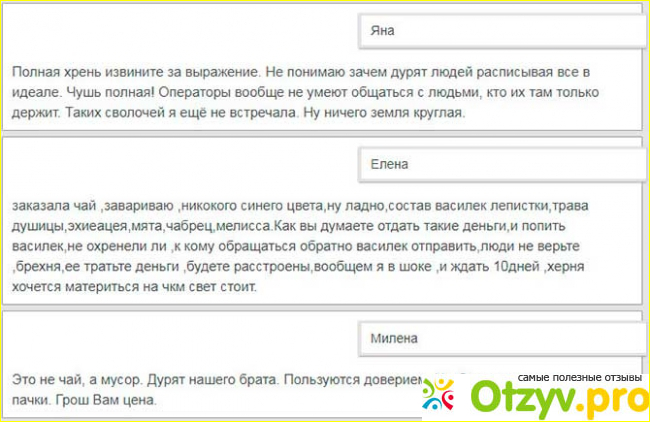 В интернете действительно можно найти множество как положительных, так и отрицательных отзывов про этот чай! ЧАСТЬ ЛЮДЕЙ ХВАЛЯТ НАПИТОК, СЧИТАЯ, ЧТО ИМЕННО БЛАГОДАРЯ ЕМУ ЛЮДЯМ УДАЛОСЬ СБРОСИТЬ ЛИШНИЙ И НЕЖЕЛАТЕЛЬНЫЙ ВЕС. ПО МНЕНИЮ ЖЕ БОЛЬШИНСТВА ЭТО ПРОСТОЙ НАПИТОК, ОТ КОТОРОГО ПОЛЬЗЫ НИКАКОЙ ПРИ УСЛОВИИ, ЧТО РЕЧЬ ИДЕТ О НЕСКОЛЬКИХ ТЫСЯЧАХ РУБЛЕЙ ЗА ПАЧКУ ЧАЯ!