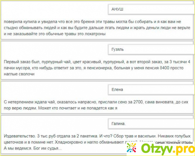 И таких отзывов можно встретить множество в интернете. Цена действительно неоправданно завышена! Но, это ведь делается с целью похудения, а значит, человек пойдет на все, чтобы стать стройнее. Но извините, три тысячи рублей за чай. К тому же, если верить отзывам пользователей, реальным, которые попробовали чай и ничего не почувствовали, то просто обидно выкидывать такие большие деньги, осознавая, что результата они не получат. Если им за ранее сказать, что вместо чудо похудения они за три тысячи рублей не получат ровным счетом ничего, то никто из таких людей, желающих похудеть, не станет тратить и рубля на бесполезный напиток.
