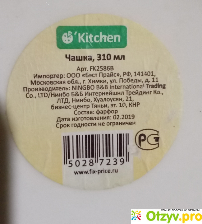 Покупкой я лично довольна, именно таких чашек у нас давно не видела в сети. Появились другой формы, объема и по более высокой цене. Дата изготовления данной - февраль 2022.