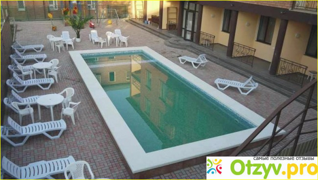 Что хочу сказать в целом об этой частной гостинице. Находится в доступном месте, в шаговой доступности всё для отдыха и развлечений. Очень интересный интерьер, чистый бассейн оснащенный лежаками. Так же доступные цены для этого курортного города. Вы можете поселится в этой гостинице как один так и со своей семьёй, если у вас есть дети то им тоже будит чем там заняться и весело провести время и на территории гостинице.