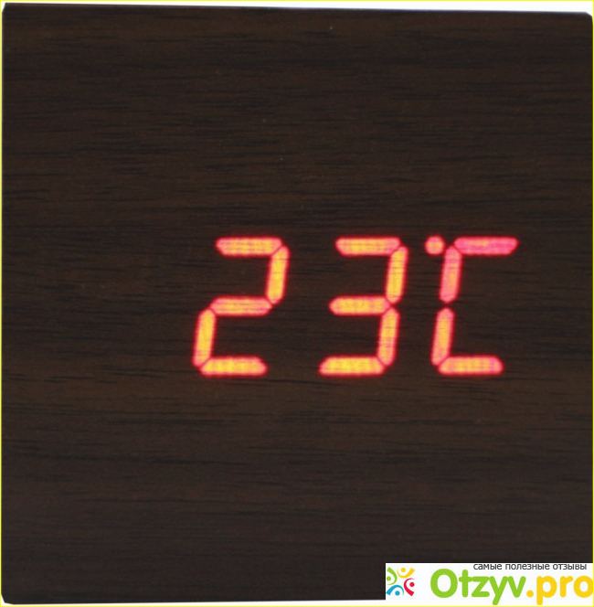 Часы сделаны из дерева. Оно отлично отшлифовано. Часы показывают время. Время можно установить чтобы показывало в двенадцатичасовом формате и в двадцати четырём формате. Также, часы показывают температуру воздуха в вашей квартире. Температуру можно также настроить, чтобы показывало по Цельсию и Фаренгейту. Подсветка у часов одна- красного цвета. Часы поочерёдно показывают время и температуру. Работают часы автономно через батарейки, но они также способны работать от USB-кабеля, который идёт в комплекте к данным часам. Поэтому, если у вас сели батарейки в часах, то можно подключить их через USB-кабель.