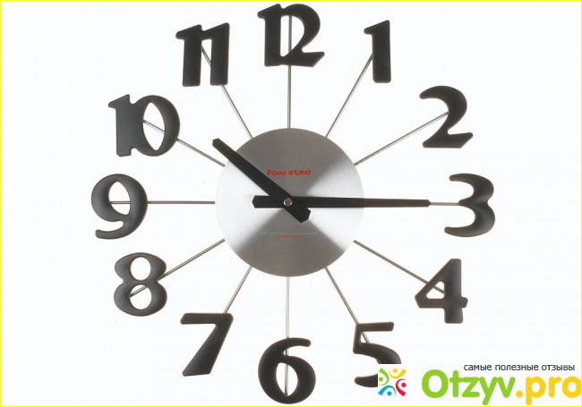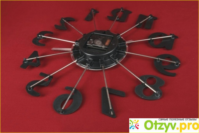 Часы имеют циферблат, но он сравнительно небольшой и находится в самом центре настенных часов. цифры расположены не на циферблате, а отдельно от него - на палочках, которые идут от центра часов по окружности.