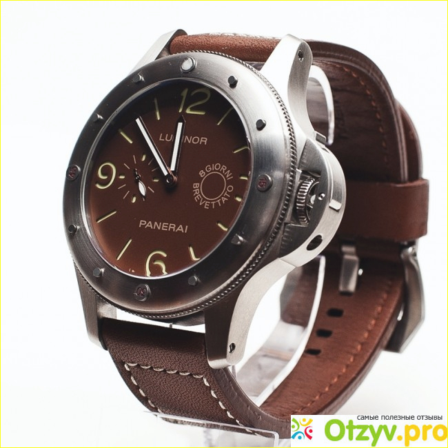 Часики такие, как бы, сделаны в Швейцарии, механизм соответственно, также швейцарский. Изначально именно такая вот модель panerai очень точно копирует часы, которые в свое время выдавались итальянским подводникам, точнее подводным диверсантам. Ну, это так, типа из истории часов, легенда, так сказать. Фирма же создана уже в наши дни, а вот дизайн взят полностью из тех часов. Тех часов до наших дней практически не сохранилось, потому что цифры на их циферблате были нанесены при помощи специального радиационного состава. После войны, в основном, они были уничтожены. Ну, красивая легенда, красивая история, часы тоже имеют такой сдержанный и лаконичный дизайн, поэтому они сейчас входят в моду.