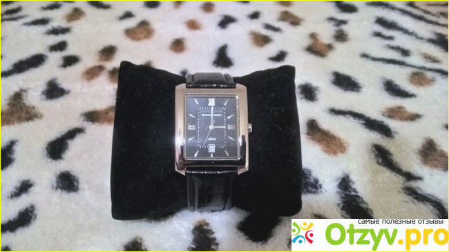 Внешне, часы представляют собой прямоугольный корпус с черным циферблатом, хромированной рамкой вокруг минерального стекла, и неплохим черным ремешком из натуральной кожи. Фурнитура ремешка, и сам ремешок с обратной стороны помечены фирменным логотипом.
